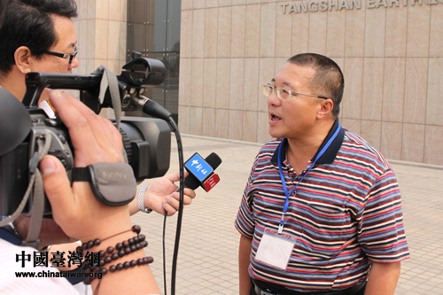 圖為臺灣基層民眾大陸參訪團嘉義縣團長顏文正接受記者采訪。(中國臺灣網發 張成標 攝)