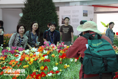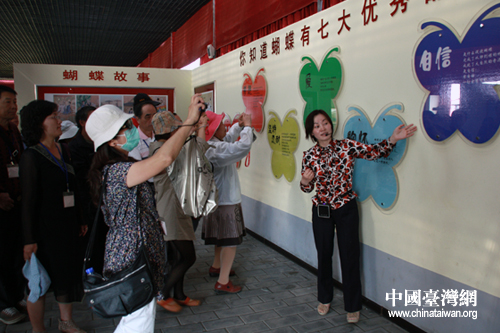 參訪團(tuán)團(tuán)員來到順義區(qū)高麗營鎮(zhèn)的七彩蝶園,認(rèn)真聽取講解員講述蝴蝶的七大優(yōu)勢(shì)。(中國臺(tái)灣網(wǎng) 李丹 攝)