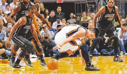中國臺灣網5月9日消息 據臺灣媒體報道,明天上午7時,季后賽1勝3敗的紐約尼克斯將在邁阿密出戰與熱火的第5戰,背水一戰的壓力可想而知。雖然尼克斯教練伍德森(Mike Woodson)已將華裔“豪小子”林書豪(Jeremy Lin)排除在第5戰沙盤推演之外,但ESPN專欄作家里克·布徹(Ric Bucher)卻爆料,林書豪出戰的機率高達95%,因為內部消息傳出,高層逼豪小子帶傷上場。