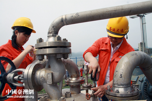 工人們?yōu)樯a(chǎn)設(shè)備檢查修整。(中國(guó)臺(tái)灣網(wǎng) 楊麗 攝)