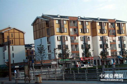 車進新北川縣城,民居掠影(中國臺灣網(wǎng) 楊麗 攝)