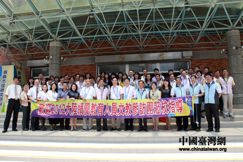 5月25日上午,“大陸優(yōu)秀教育工作者交流團(tuán)”一行來(lái)到嘉義市興嘉小學(xué),與師生、家長(zhǎng)會(huì)代表互動(dòng)交流。圖為兩岸教育工作者合影留念。(中國(guó)臺(tái)灣網(wǎng) 李丹 攝)