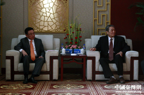 河北省政協副主席孔小均,全國臺企聯會長、臺升國際集團董事長郭山輝,會見前來參加“兩岸新能源·新技術發展研討會”的臺商代表。(中國臺灣網 王怡然 攝)