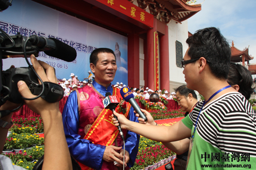 臺灣鄉(xiāng)鎮(zhèn)市民代表聯(lián)合會會長、云林縣北港朝天宮董事長蔡詠锝接受采訪時說,此次兩岸宮廟聯(lián)誼活動得到了兩岸相關部門的大力支持和基層民眾的歡迎,希望媽祖文化不僅能帶動兩岸民俗文化和民間的交流,更希望媽祖活動能越辦越好,也希望媽祖文化能夠走向世界。
