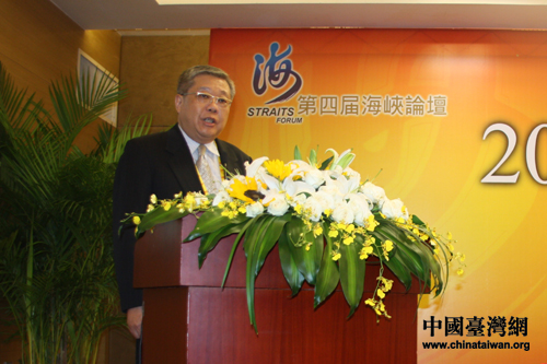 臺灣中華僑聯總會副秘書長廖俊杰進行演講。(中國臺灣網 張潔 攝)
