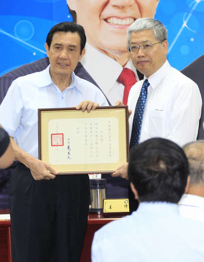 馬英九(左)出席國民黨中常會,林益世職缺由臺“行政院副秘書長”陳士魁(右)暫時代理 。圖片來自臺媒