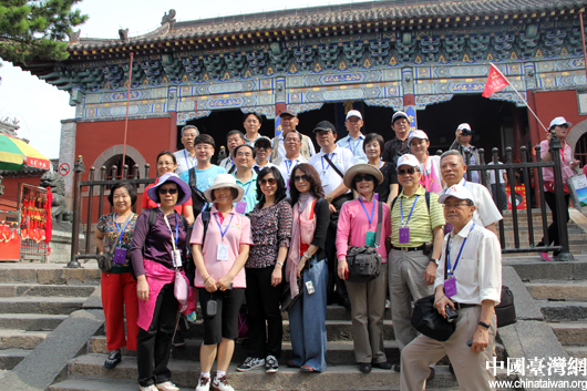 臺灣嘉賓在碧霞祠前合影留念。(中國臺灣網 芮益芳 攝)