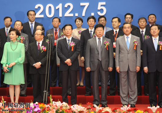 中共中央政治局委員、天津市委書記張高麗,全國政協(xié)副主席鄭萬通,中共中央臺辦、國務(wù)院臺辦主任王毅,中國國民黨副主席蔣孝嚴(yán)等領(lǐng)導(dǎo)、嘉賓出席開幕式。(中國臺灣網(wǎng) 王思羽 攝)