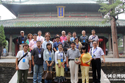 “情系齊魯——兩岸文化聯(lián)誼行”參訪團(tuán)嘉賓在亞圣殿前合影留念。(中國(guó)臺(tái)灣網(wǎng) 芮益芳 攝)