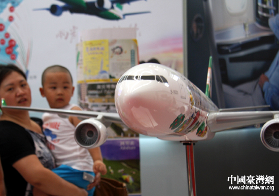 展位內的臺灣長榮航空hello kitty機模型。(中國臺灣網 王思羽 攝)