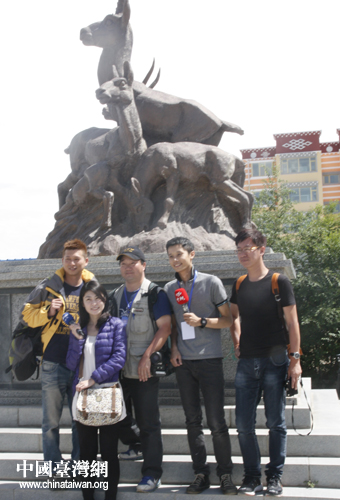 臺(tái)灣媒體在可可西里保護(hù)區(qū)管理局前合影留念(中共臺(tái)灣網(wǎng) 陳寧 攝)