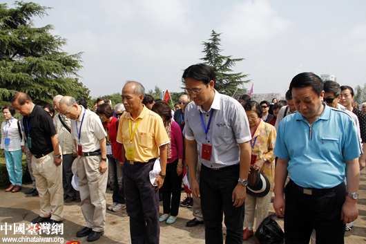 兩岸文化界人士在紀念館前鞠躬致敬。(中國臺灣網 芮益芳 攝)