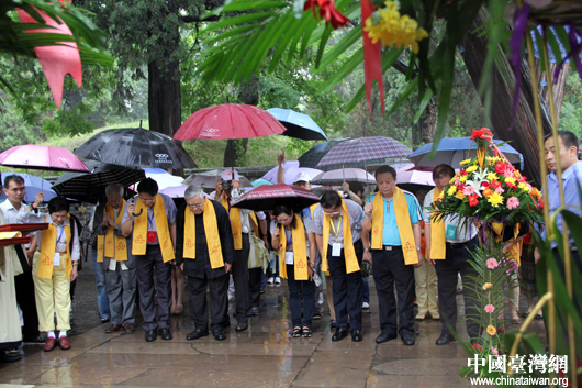 中國臺灣網(wǎng)7月7日曲阜消息 2012年7月5日,參加“情系齊魯——兩岸文化聯(lián)誼行”活動的臺灣文化界人士,來到曲阜孔林。天上下起了淅淅瀝瀝的雨,增添了幾分肅穆的氣氛。臺灣文化界人士穿過兩側(cè)的千年松柏,來到孔子墓前,時間仿佛凝固。