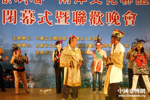 中國臺灣網7月13日北京消息 “情系齊魯——兩岸文化聯誼行”于7月9日在青島舉行了隆重的閉幕式。在閉幕式之后,依往屆慣例,兩岸文化屆人士一起舉行精彩的大聯歡。這次大聯歡不分專業行當,不分大陸臺灣,以參訪過程中的五輛大巴旅行車為表演集體,大巴車中的兩岸文化界人士攜手各顯其能,一起打造出一臺別開生面的精彩晚會。