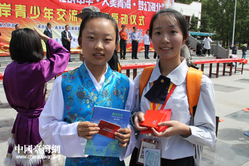 海北臺灣兩地學生互相交換紀念品(中國臺灣網 趙輝 攝)