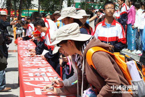 京臺青三地學生共同在啟動橫幅上簽字留念(中國臺灣網 趙輝 攝)