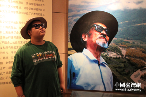 王洛賓音樂藝術紀念館內,一位北京同學將王洛賓神態模仿的惟妙惟肖(中國臺灣網 趙輝 攝)