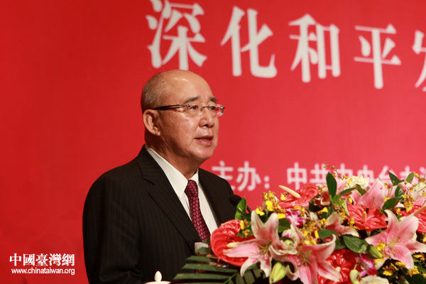 中國國民黨榮譽(yù)主席吳伯雄出席第八屆兩岸經(jīng)貿(mào)文化論壇閉幕式并致辭。(中國臺灣網(wǎng) 于斯文 攝)