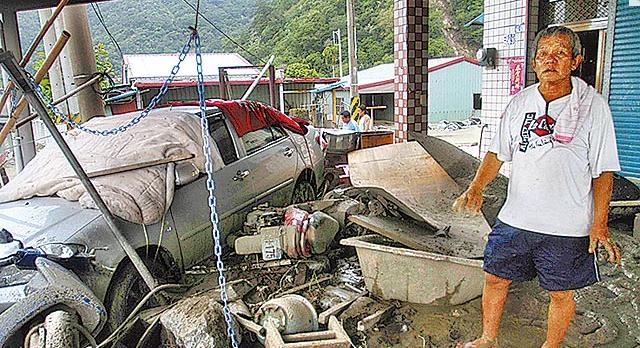 和中部落災(zāi)民林漢吉回到土石掩埋的家園,慶幸和家人跑得快,逃過(guò)一劫。(圖片來(lái)自臺(tái)媒)