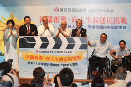 吳敦義(左三)出席“人間系列”公益影展開幕記者會。
