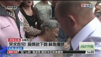 陳水扁母親向蘇貞昌下跪,求他救陳水扁。來源:臺灣媒體