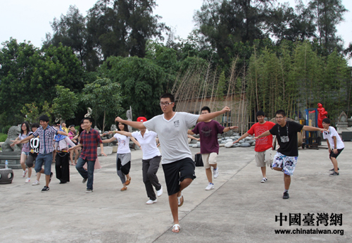 海峽兩岸大學生互動做游戲(中國臺灣網 楊永青 攝)