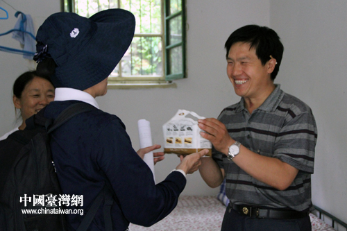 慈濟(jì)基金會的義工為每一戶災(zāi)民送上親手制作的平安符。(中國臺灣網(wǎng) 馬迪 攝)