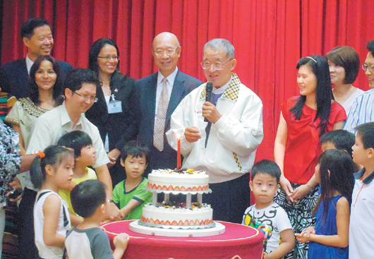 臺灣“監察院”今天上午舉行慶生會暨親子日活動,安排10組臺“監察院”同仁參與孝親洗腳。上周才過生日的院長王建煊與院內同仁親屬一同唱生日快樂歌。