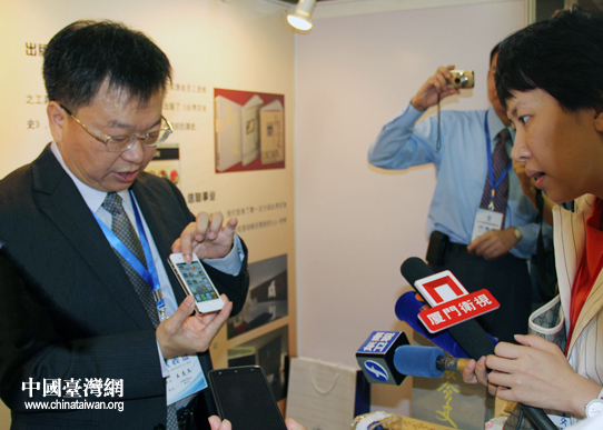王志文現(xiàn)場演示“搶鮮機(jī)”。(中國臺灣網(wǎng) 王思羽 攝)