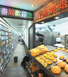 重慶南路有的書局部分店面讓給面包店經營。來源:臺灣《聯合報》