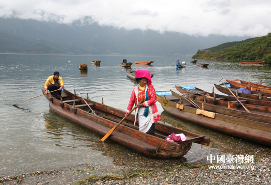 瀘沽湖畔泛舟 (中國(guó)臺(tái)灣網(wǎng)記者 張曉靜 攝)