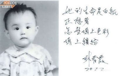 林青霞小時候就有大大的雙眼,相當可愛,她并在相片空白處寫上“她的生命是白紙,正想著怎么填上色彩,填上繽紛”,并在旁簽名注明時間。劉嘉玲的照片相當好認,輪廓和現在相差不大,郭富城的童年照則較不容易認出。(中國臺灣網 杜美瑩)