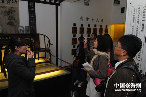 圖為兩岸記者參訪蒙頂山世界茶文化博物館,聽導游講解茶葉的知識、茶的歷史及茶文化藝術等。(四川省臺辦供圖)