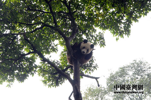 大熊貓爬上樹梢(中國臺灣網(wǎng) 王曉蕊 攝)