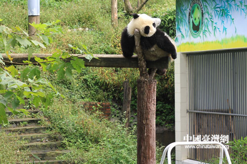 這只大熊貓如此睡午覺(中國(guó)臺(tái)灣網(wǎng) 王曉蕊 攝)
