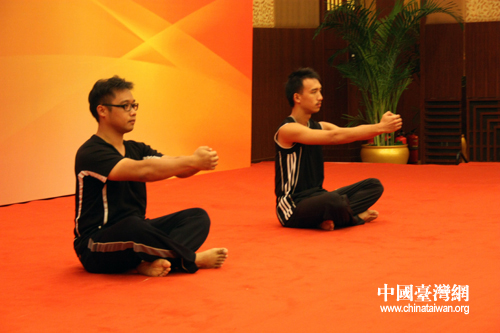 北京中醫藥大學的臺灣學生表演跆拳道《男兒當自強》。(中國臺灣網 王怡然 攝)