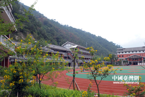 災后重建的石棉縣民族中學校園(中國臺灣網 王曉蕊 攝)