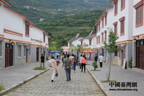 兩岸記者參訪先鋒鄉松林村集中安置點(中國臺灣網 王曉蕊 攝)