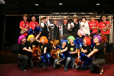 臺中爵士音樂節將從20日起登場,臺中市長胡志強(后左三)16日帶領3位副市長變身搖滾歌手,載歌載舞為活動暖身。圖片來源:臺灣“中央社”