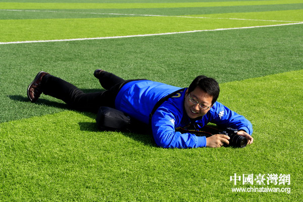 舟曲災后重建蘭州新區轉移安置項目,圖為環球網記者王歡感受綠草如茵的足球場。 (中國臺灣網 董憲超 攝)