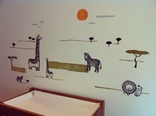孫燕姿在微博秀出嬰兒房的照片,房間的墻壁上畫了長頸鹿、斑馬、獅子等圖案。(圖片來自臺媒)