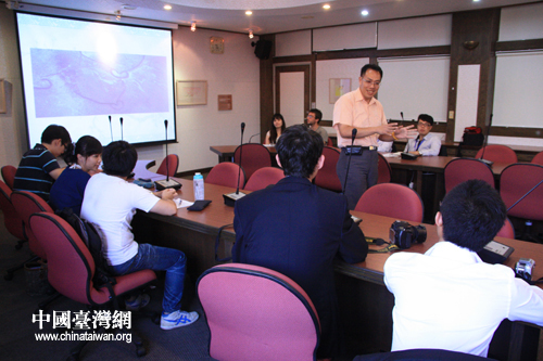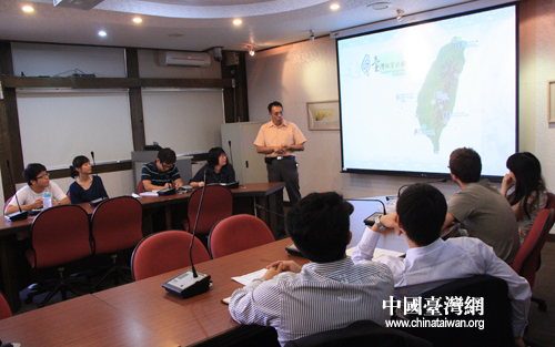 臺南大學張伯宇主任為大陸青年赴臺交流團介紹臺灣地理情況(中國臺灣網 王文英 攝)