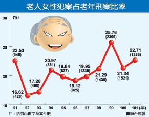 臺灣老年女性犯罪比率圖(圖片來源:臺灣《聯合報》)