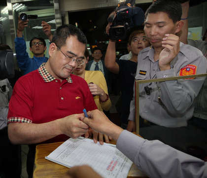 林益世3度到派出所報到 換穿紅色POLO衫(圖)