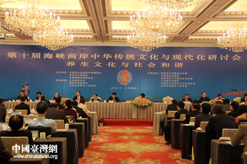 中國臺灣網11月1日江蘇如皋消息 第十屆海峽兩岸中華傳統文化與現代化研討會1日上午在“世界長壽鄉”江蘇省如皋市開幕。海峽兩岸和香港地區的文化界專家學者近100人與會,共同研討“養生文化與社會和諧”。