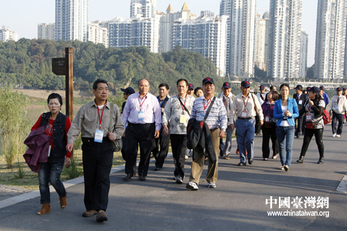 臺灣信眾漫步株洲市湘江風光帶,領略湘江風光 。(中國臺灣網 陳睿 攝)