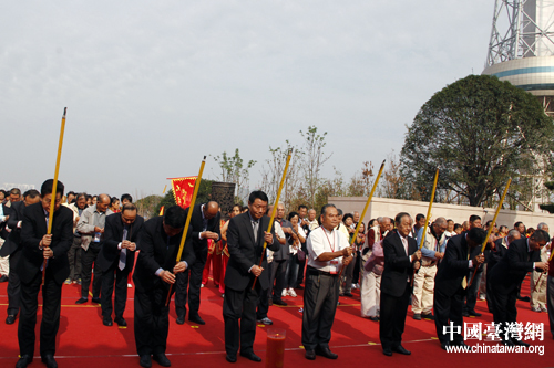 兩岸的嘉賓們共同敬獻高香,為炎帝神農氏祈福。(中國臺灣網 陳睿 攝)