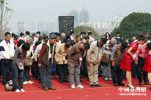 來自臺灣省的信眾向炎帝行三鞠躬禮,表達對炎帝神農氏的無限敬仰。(中國臺灣網 陳睿 攝)