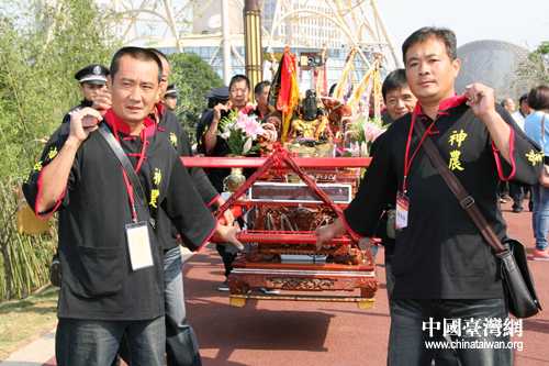 11時,祈福人員鳴鐘擊鼓歡送神尊回駕。(中國臺灣網 陳睿 攝)