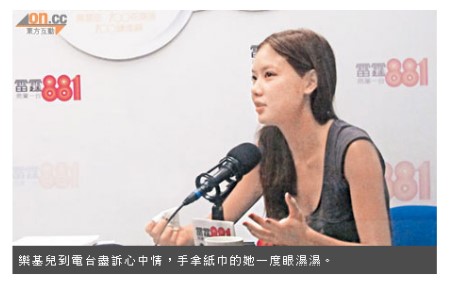 樂基兒在香港電臺談離婚始末。圖片來自臺媒